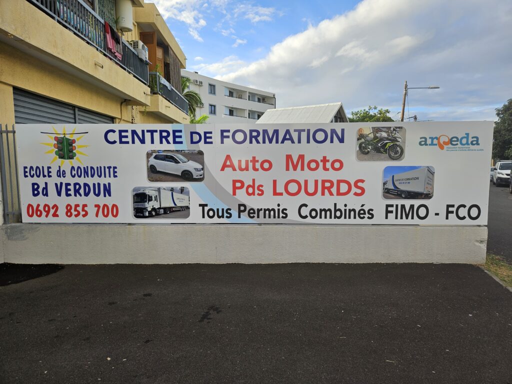 Le centre de formation école de conduite Boulevard de Verdun labellisé école conduite qualité et Qualiopi (cliquez ici pour visualiser le certificat Qualiopi) se situe dans la ville du Port à l’île de la Réunion. Nous proposons diverses formations à la conduite et est accessible à tout public: