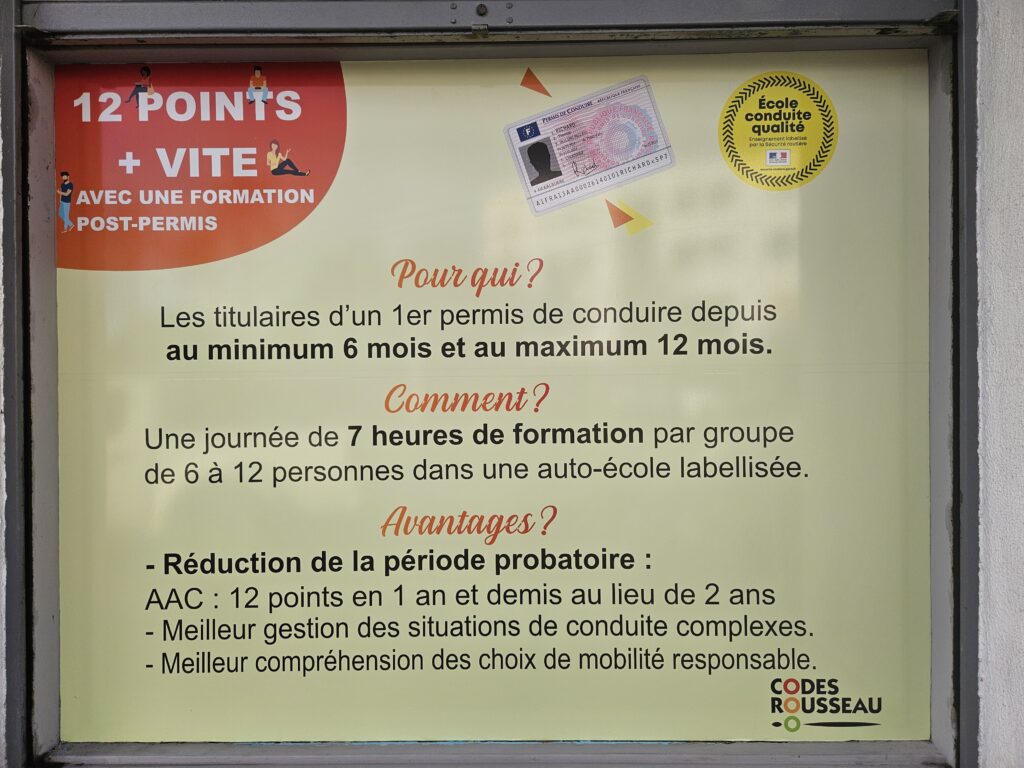 - les formations aux permis B (voiture) et AAC (conduite accompagnée voiture)